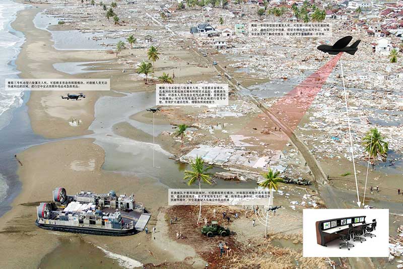 鷹眼三號(hào)機(jī)動(dòng)型六旋翼無(wú)人機(jī),可搭載多用途投擲器模塊,對(duì)救援人員無(wú)法快速到達(dá)的區(qū)域,進(jìn)行空中定點(diǎn)投擲補(bǔ)給品或急救用品;可搭載空中喊話模塊對(duì)災(zāi)民進(jìn)行喊話、安撫、疏導(dǎo)、指揮,防止恐慌情緒蔓延;在救援隊(duì)開展夜間救援時(shí),可搭載探照燈模塊,對(duì)局部區(qū)域提供高亮度照明,提高救援效率;在災(zāi)害現(xiàn)場(chǎng)發(fā)生打、砸、搶等違法事件時(shí),可搭載空中抓捕網(wǎng)模塊,對(duì)犯罪嫌疑人實(shí)施空中機(jī)動(dòng)抓捕。