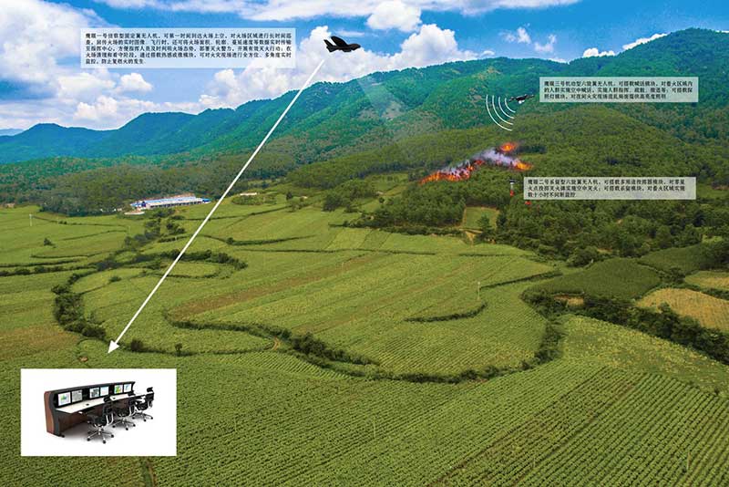 鷹眼一號(hào)偵察型固定翼無(wú)人機(jī),可第一時(shí)間到達(dá)火場(chǎng)上空,對(duì)火場(chǎng)區(qū)域進(jìn)行長(zhǎng)時(shí)間巡查,回傳火場(chǎng)的實(shí)時(shí)圖像。飛行時(shí),還可將火場(chǎng)面積、輪廓、蔓延速度等數(shù)據(jù)實(shí)時(shí)傳輸至指揮中心,方便指揮人員及時(shí)判明火場(chǎng)態(tài)勢(shì),部署滅火警力,開展有效滅火行動(dòng);在火場(chǎng)清理和看守階段,通過(guò)搭載熱感成像模塊,可對(duì)火災(zāi)現(xiàn)場(chǎng)進(jìn)行全方位、多角度實(shí)時(shí)監(jiān)控,防止復(fù)燃火的發(fā)生。