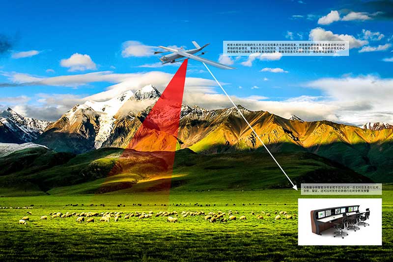 利用大航時(shí)長(zhǎng)航程的無(wú)人機(jī)可以實(shí)現(xiàn)單次大面積的巡查,而搭載熱感偵測(cè)及多光譜系統(tǒng)可以對(duì)草場(chǎng)的牲畜情況、草場(chǎng)生長(zhǎng)及過(guò)牧情況、防火防病蟲等工作采集精準(zhǔn)信息。專業(yè)的多級(jí)無(wú)中心網(wǎng)絡(luò)鏈路可以保障無(wú)人機(jī)采集到的圖像、數(shù)據(jù)等信息實(shí)時(shí)回傳至任一級(jí)指揮或監(jiān)管部門。大數(shù)據(jù)分析智能分析系統(tǒng)不但可以對(duì)一些實(shí)時(shí)信息進(jìn)行比對(duì)、分析、留證,還可以對(duì)歷史記錄進(jìn)行比對(duì)分析及預(yù)警。