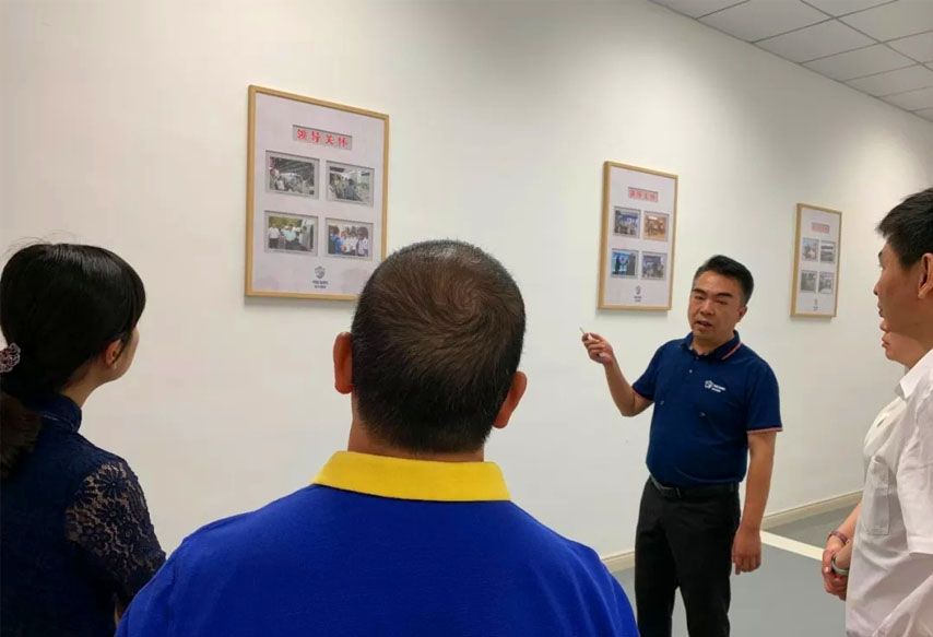 參觀過程中,基地常務副總經理胡成浩引導各領導分別參觀公司的榮譽專利展示墻、整體規(guī)劃布局圖并做詳細講解。