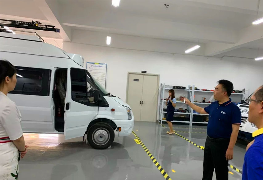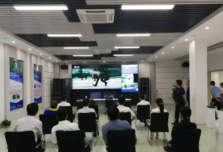 隨后,考察團一行人由胡總陪同著重參觀了公司的展演中心及室內無人機訓練館,視察了公司重點無人機機型及各功能模塊,分別介紹了相關功能及生產工藝,得到了一致認可和贊許。其中,地面無人機指揮控制車獲得了眾客戶的格外關注和深入了解。